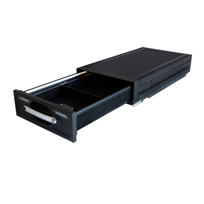 (1) 7"(H) x 37.5"(L) Premium Kufu Drawer Unit (180mm(H) x950mm(L)) with integrated drawer face task lights and interior full length LED strip lights, interior carpet, key set, premium non-slip top and interior movable cargo dividers.  Part No:  IIG000749